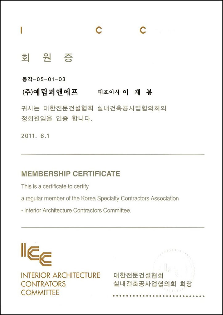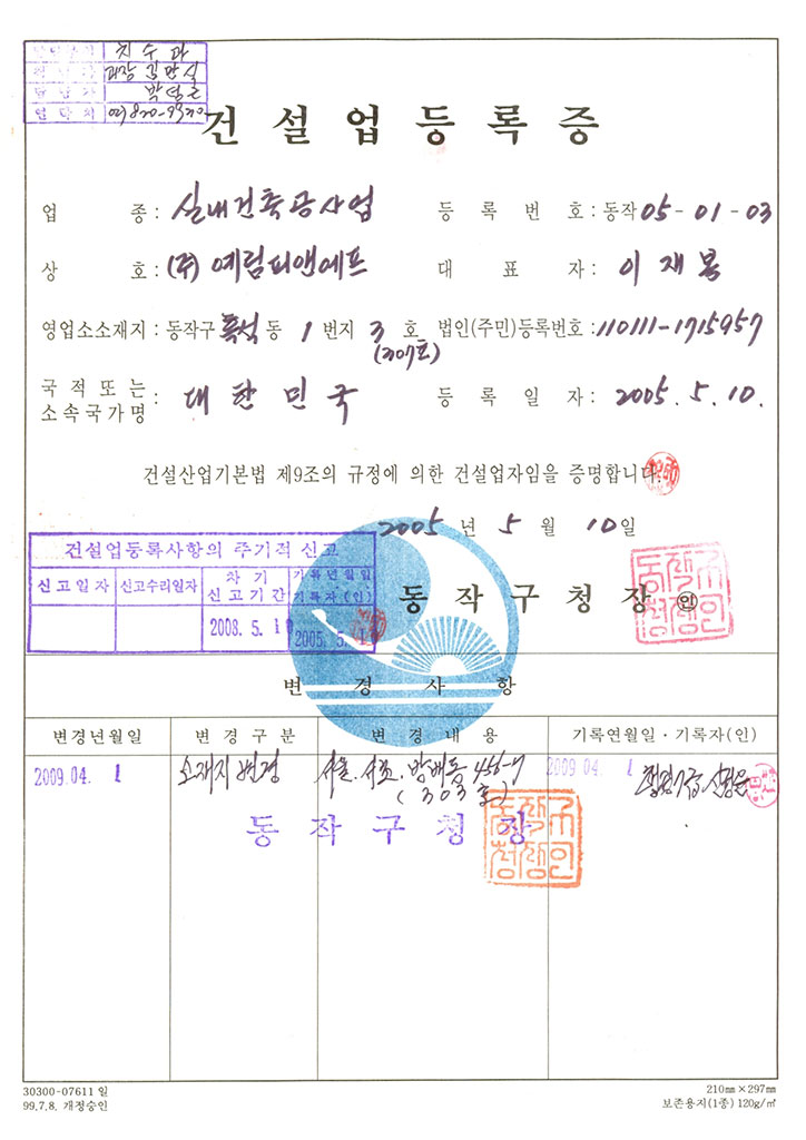 실내건축공사업 면허 등록2014.09.25