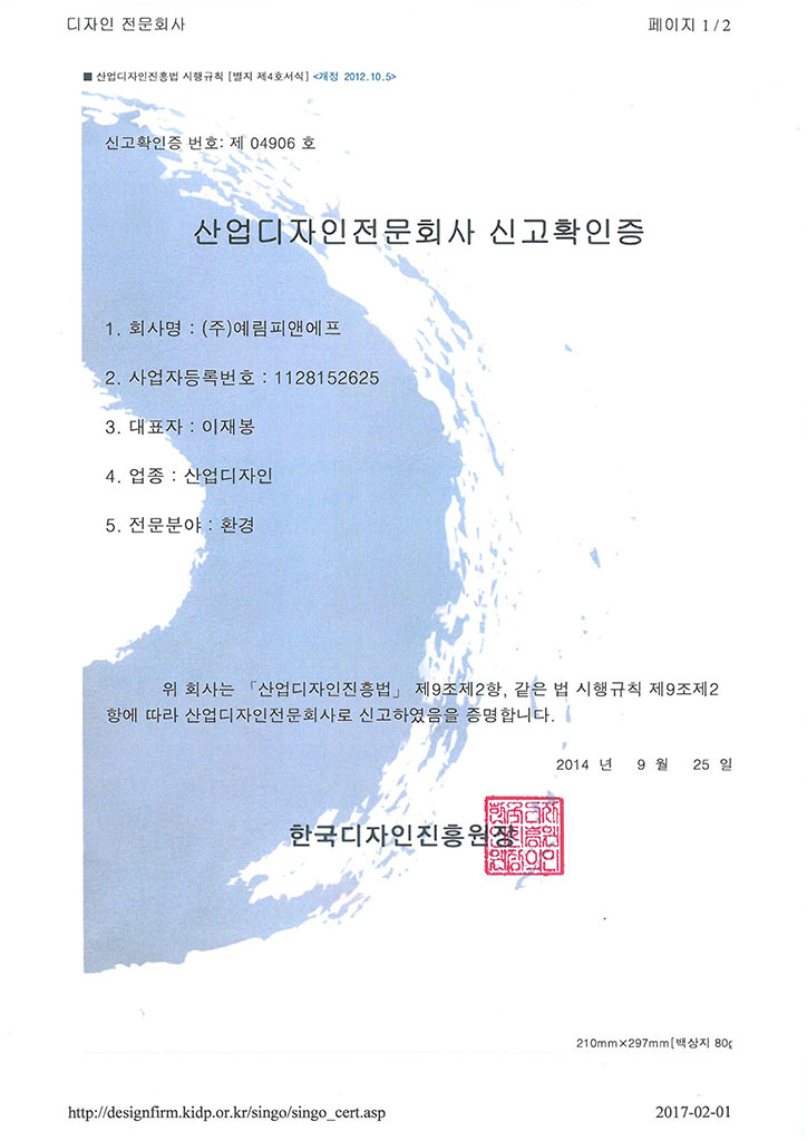 환경디자인분야 산업디자인 전문회사 등록2018